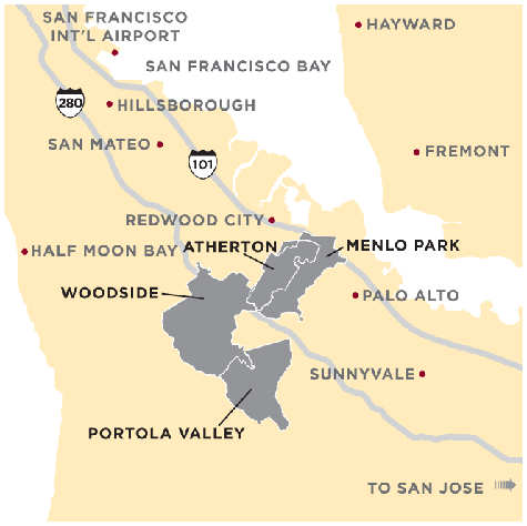 With most properties exceeding an acre, no sidewalks, an abundance of heritage oaks, and a ban on commerce, as well as equal access to San Francisco and San Jose, the affluent Town of Atherton is consistently rated as one of the most prestigious addresses in the country.