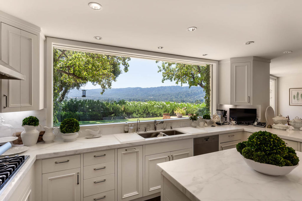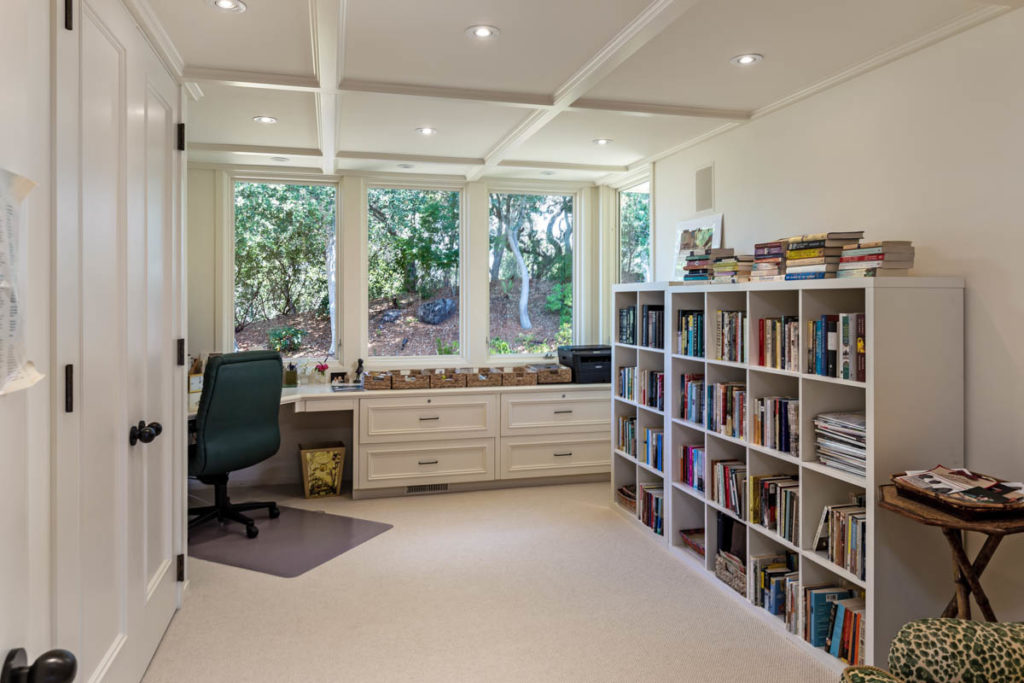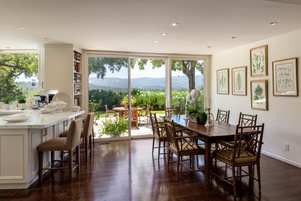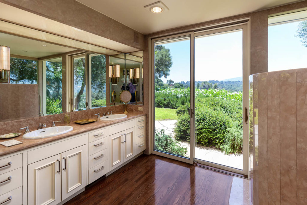 The home’s design takes full advantage of the views with almost every room oriented to the western hills or otherwise looking to the magnificent surrounding gardens and open space. Every room features sliding glass doors to the grounds and most are designed from floor-to-ceiling and wall-to-wall for the ultimate visibility and natural light. Clerestory windows in some rooms provide even more brilliance.