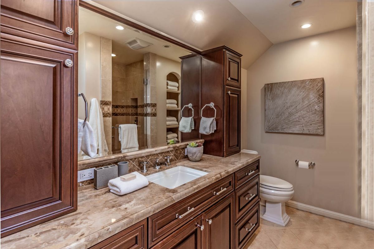 Befitting a property of such magnitude, the rear grounds present a wonderful setting for relaxing, fitness, and fresh-air enjoyment with a pool and spa, large sport court, and heated cabana with outdoor kitchen, bar seating, and media entertainment. All of this, plus a central location that puts downtown conveniences in Menlo Park or Redwood City close-at-hand.