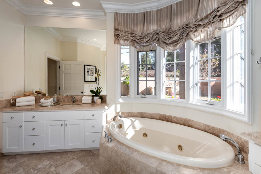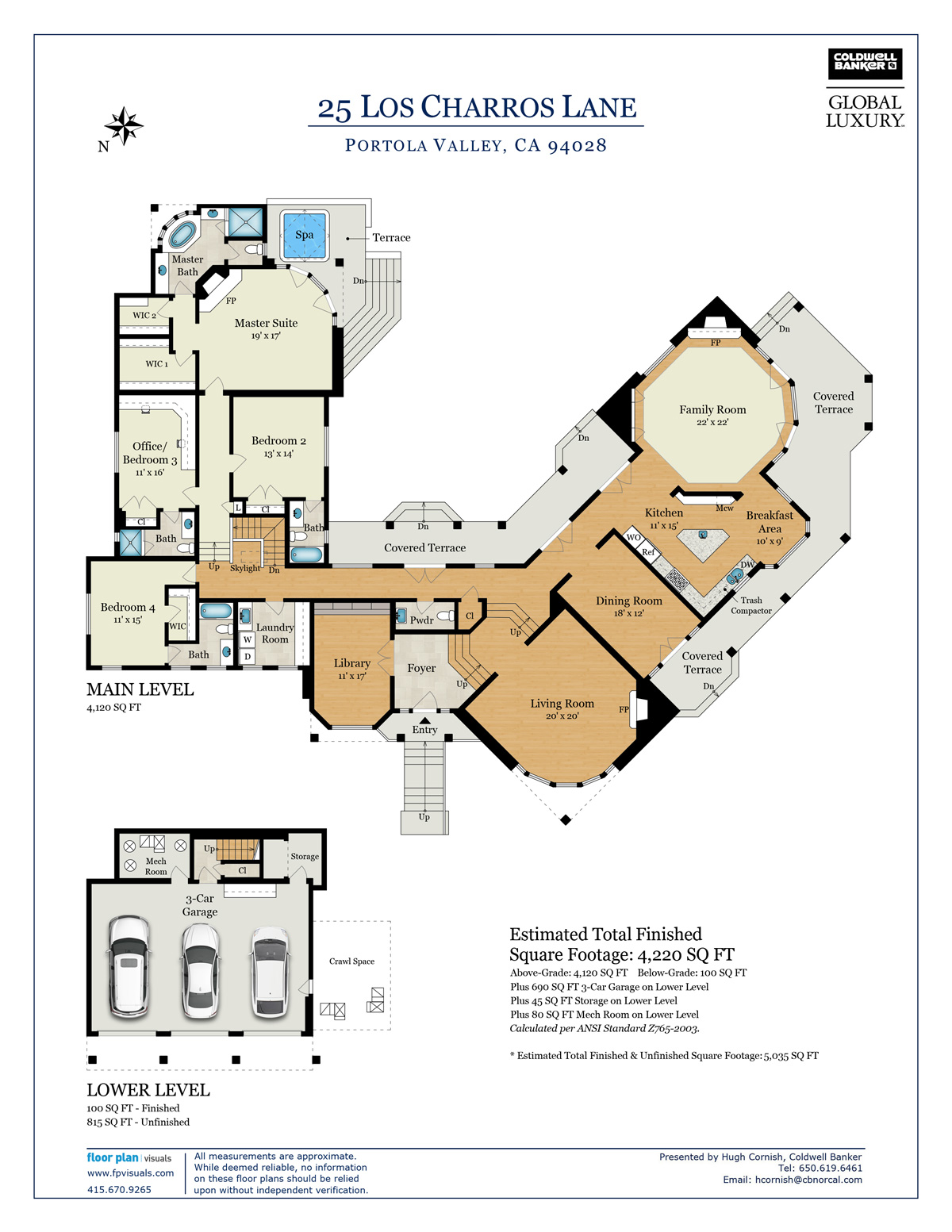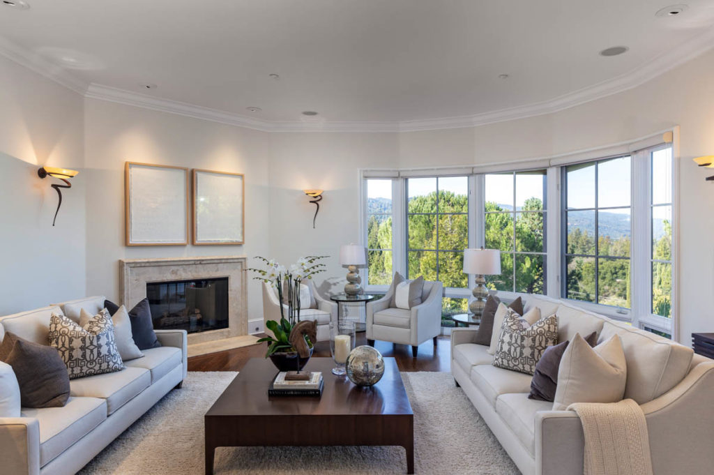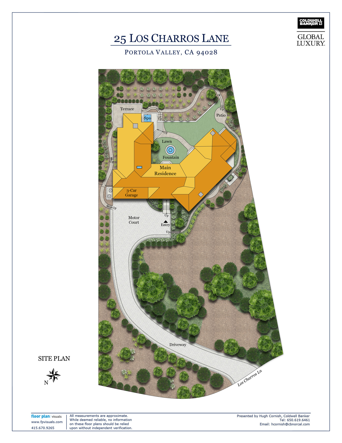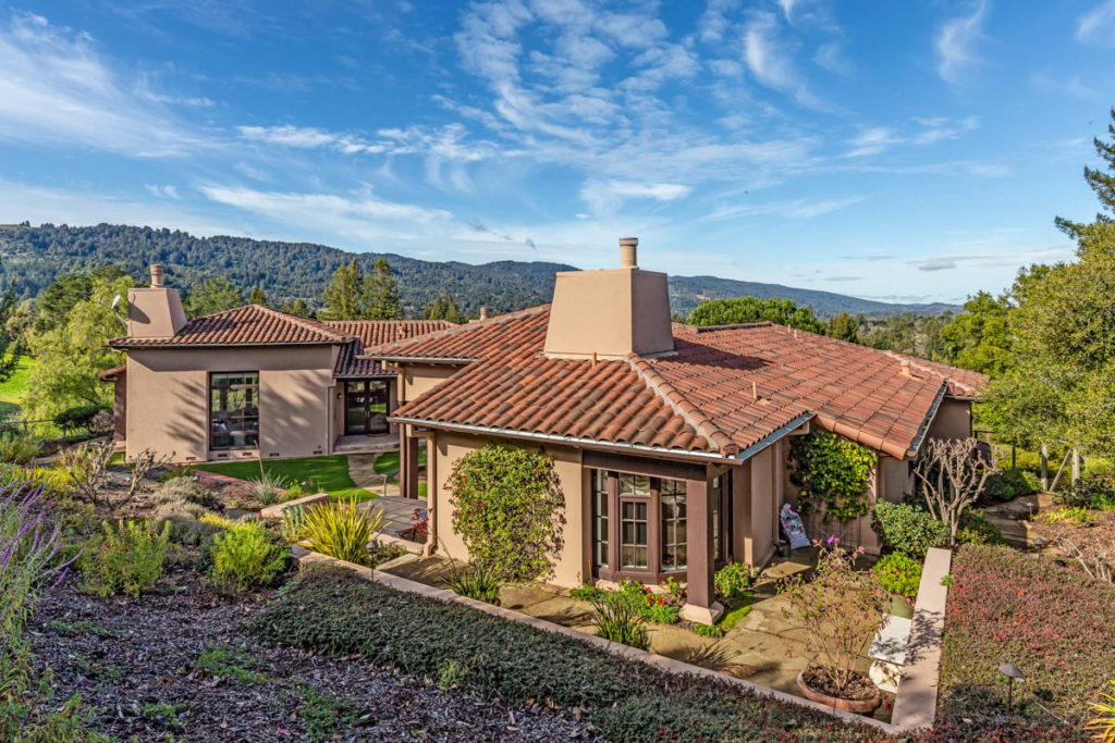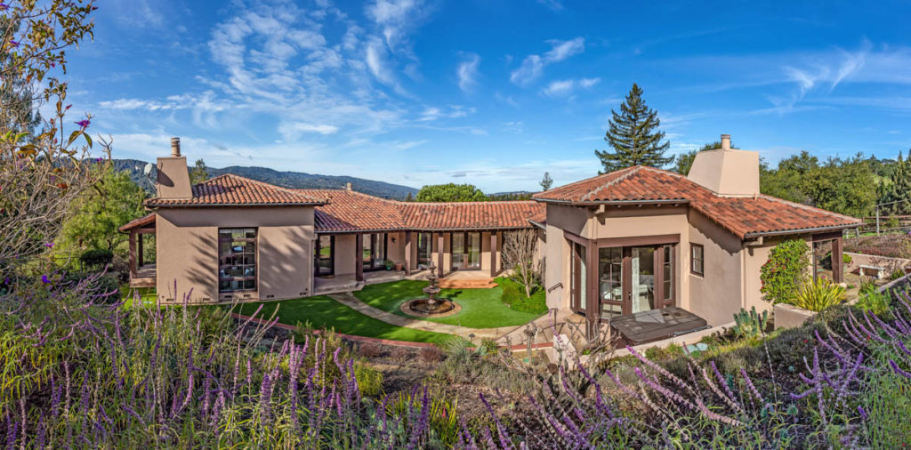 There are 4 spacious bedrooms, each with en suite bath, plus a powder room; one bedroom has been extensively customized for office use. A spa off the lavish master suite, a tiered fountain on the rear yard of eco-friendly synthetic lawn, plus a wraparound covered patio at the front highlight the grounds. Classic and timeless, beautifully appointed, and Windy Hill views – this is indeed a special place to call home in Portola Valley.