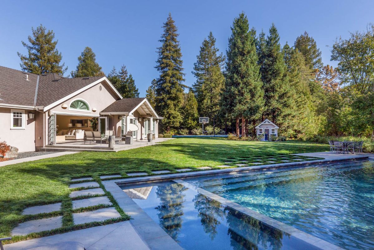 Sophisticated designer elegance with casual formality is expressed in every detail of this complete home renovation in prestigious west Atherton. Classic and timeless details abound including Brazilian cherry flooring, crown moldings, and plantation shutters., The gourmet kitchen, which opens fully to the family room, is a masterpiece ready for the most demanding chef. The formal living and dining rooms feature Nana-style stacking glass doors that fully open the space to the rear terrace and grounds. An inviting loggia, complete with media and barbecue center, awaits poolside al fresco enjoyment resulting in a relaxed yet formal environment.