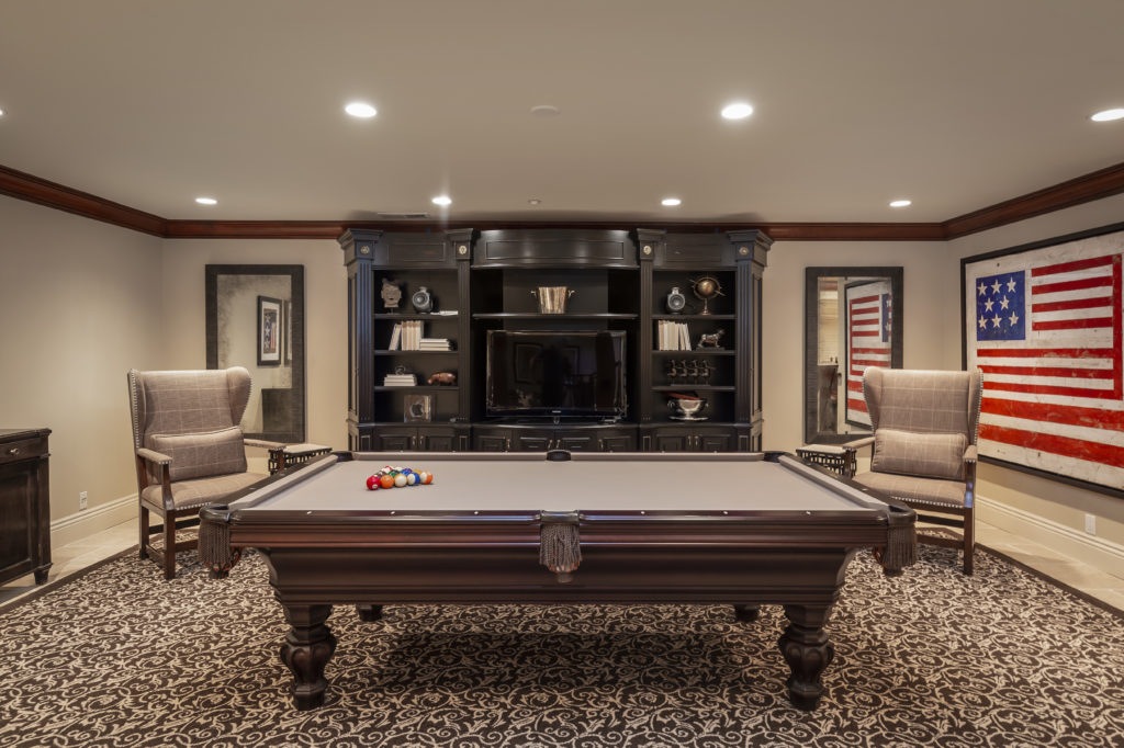 Enhancing this carefully planned design is a floor plan that maximizes the functionality of the home’s three levels. The perfect example is the playroom, which is ideally situated just down a flight of stairs from the gourmet kitchen and family room ensemble, facilitating both sound management and close supervision. The master bedroom suite offers the ultimate in luxury spanning two levels, linking upper and lower dressing rooms, each with a luxurious bath, plus direct access to a fitness center. Five additional bedroom suites are thoughtfully arranged plus there is a detached 1-bedroom, 1-bath guest house with full kitchen.
