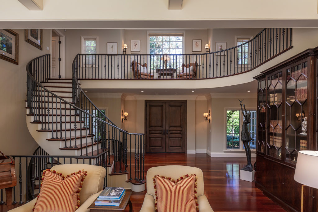 Balance, symmetry, and unstructured formality is expressed in every detail of the architecture of this estate home in prestigious West Atherton. Classic and timeless details abound including multiple hand-carved fireplaces from imported French limestone, broad expanses of wide-plank Brazilian cherry flooring, and extensive marble slab stonework. Varied ceiling treatments and subtle shifts in floor levels accentuate the estate ambiance, and technology behind the scenes fulfills modern expectations. The result is a relaxed yet formal environment that lends itself to comfortable daily living as well as lavish entertaining.