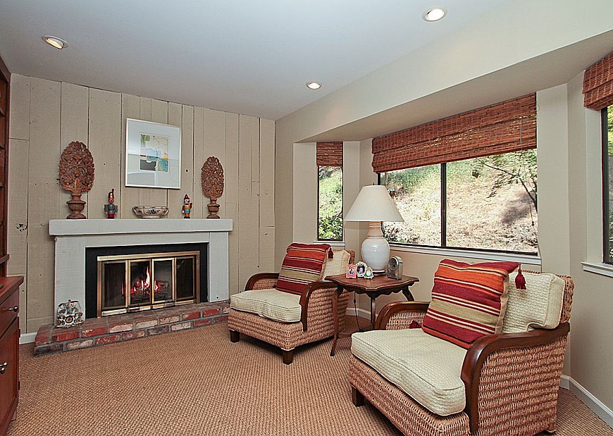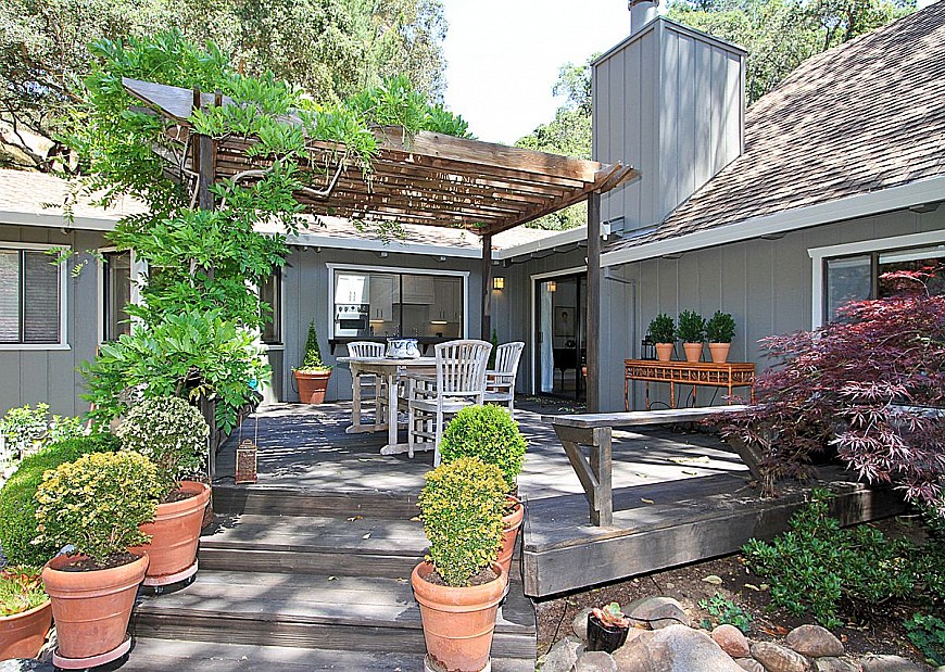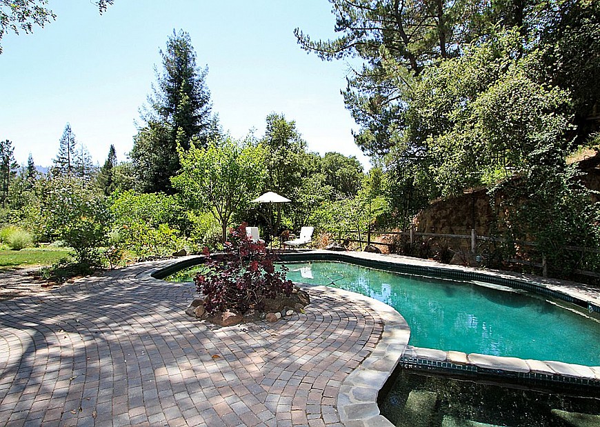 Nestled under the trees, this tranquil retreat with mountain views is located on a private drive at the end of a quiet cul-de-sac in Central Portola Valley. Features of this charming home include 3 bedrooms, 3.5 bathrooms, a bright, open living room with step down seating area and office loft, a cozy den/office, and a spacious, remodeled chefs kitchen with adjacent family room. Situated on a private acre of land, the grounds include a deck with wisteria-covered arbor overlooking a pool and spa, surrounded by mature trees, which provide privacy and a peaceful, verdant landscape