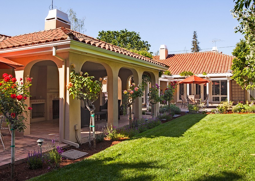 Welcome to this one-story, five bedroom, four and one-half bath Mediterranean villa nestled on approximately .50 acres in sought-after West Menlo Park. The floor plan encompasses formal living and dining rooms, an expansive family room/kitchen, plus an adjoining service area with a wet bar. In the garden, flowering shrubs border emerald lawns, and the freestanding storage shed has 120 volt power. An arbor-shaded patio extends to the one bedroom, one bath guest house, which incorporates a loggia with an outdoor gas fireplace and a gas barbecue. Additional features include central air conditioning and a fresh water irrigation well. Excellent Menlo Park schools