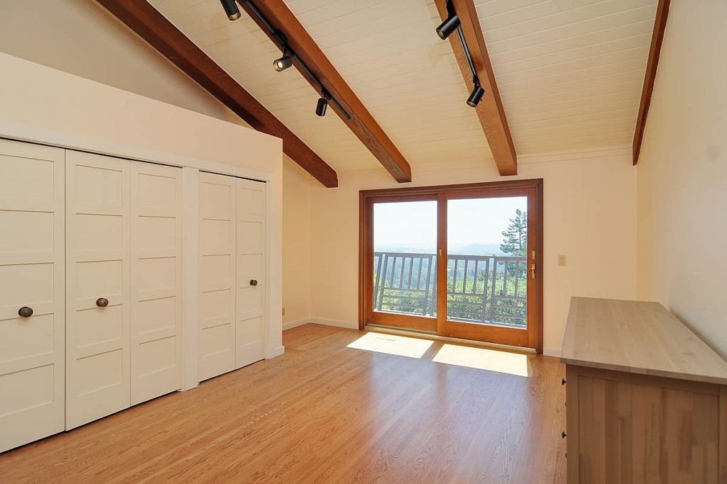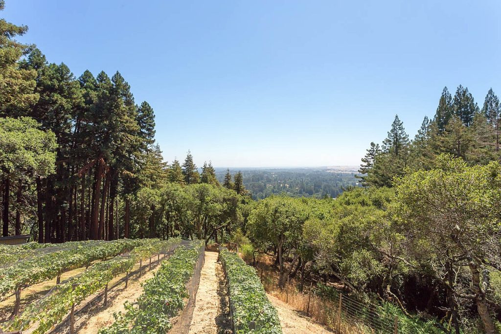 Nestled on a quiet cul-de-sac in Central Woodside, this Frank Lloyd Wright-inspired, 4-bedroom, 3-bath home provides spectacular views of Stanford University and the Santa Cruz Mountains. Vaulted, open-beam ceilings and floor-to-ceiling windows on the main floor open out to an expansive deck with hot tub, overlooking a backyard vineyard. Features of the home include a spacious living room and dining room separated by a pass-through fireplace, a chef’s kitchen with stained glass accent windows and a breakfast nook, lower-level den, and a family room with access to the vineyard. Experience this exceptional retreat just minutes from Woodside Village, Huddart Park, and Highway 280
