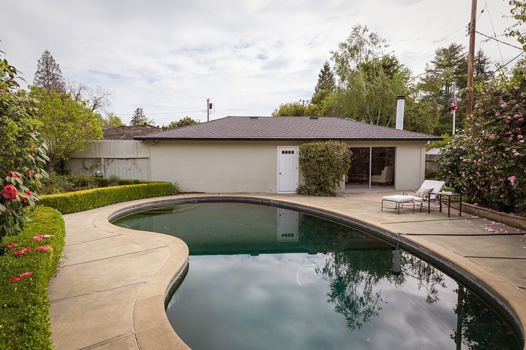 Located on a quiet cul-de-sac in Central Menlo Park, less than a mile from Downtown Santa Cruz Avenue. This 1,830 sq. ft. 3 bedroom, 2.5 bath home has a large living room, separate dining room, and bright eat-in kitchen. The spacious master suite features a gas fireplace, 4 large closets, and access to a private courtyard. A 555 sq. ft. accessory structure with full bath, wet bar, dishwasher, and range is attached to the 1-car garage. Beautiful gardens lead from a spacious back yard patio to the in-ground pool, offering a lovely entertaining space. Featuring excellent Menlo Park schools and an ideal location close to shopping, restaurants, Hwy 280, and Stanford University.