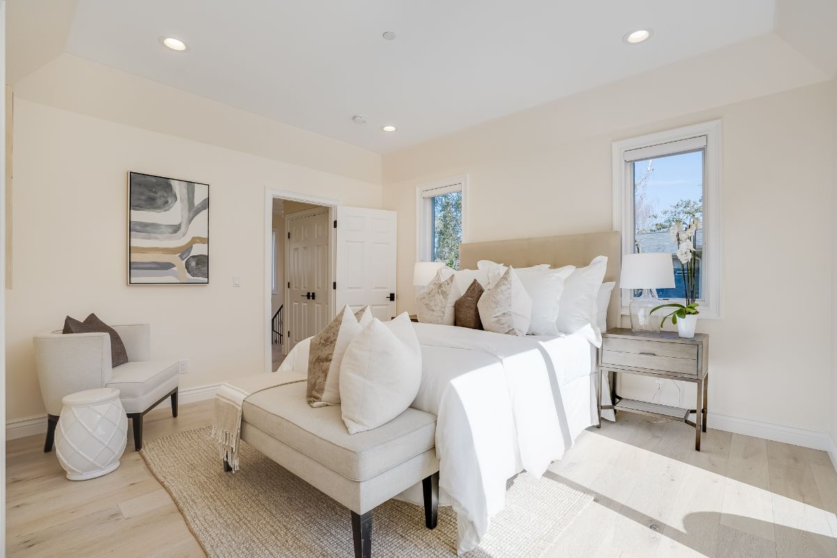 This European-inspired home embodies a stylish urban luxury-living feel in the coveted Allied Arts neighborhood of Menlo Park. Newly built in 2017, the impressive solid walnut arched front door and alcove welcome you into the home beyond a privacy fence with pedestrian gate that wraps the landscaped property. The exceptionally light-filled interiors feature soaring ceilings, ample windows, natural stone finishes, and wide-planked engineered wood floors. The home comprises three levels and has four bedrooms, four and one-half baths, plus a downstairs family room and recreation room with 9-foot ceiings and numerous glas doors to light-well patios. This special home awaits the discerning buyer seeking classic quality craftmanship with a modern ambiance.