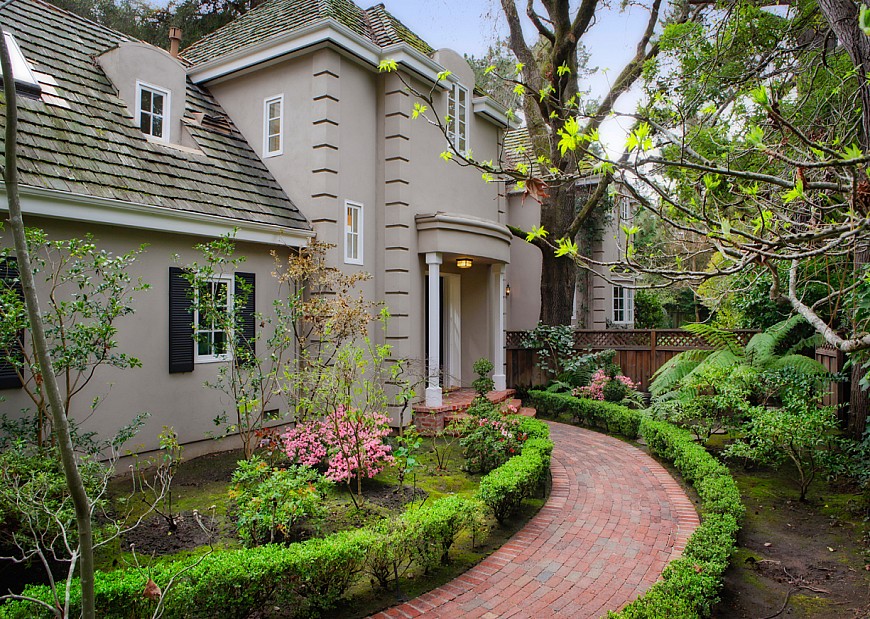 Welcome to this exceptional, three bedroom, three full- and two half-bath, chateau-style home on a tree-lined avenue in west Atherton. Built in 1995, utilizing the highest-quality materials, this lovely home offers remarkable privacy and comfort. The first story incorporates a spacious living room, an adjoining formal dining room, and a cozy study. The chef�s kitchen, with brand-new, state-of-the-art appliances, is expanded by a breakfast area and opens to the sunny family room. On the second story, there are three bedrooms, each with generous closets and en-suite full baths. The master suite features a custom-fitted walk-in closet and a private sun deck overlooking the garden. The master bath has just been renovated with vessel sinks set on a slab marble counter and a Jason whirlpool tub. Most rooms on the first story open to brick patios and walkways, which connect the house to the recently landscaped garden. The front and rear gardens encompass a variety of textures, including stones and redwood bark, a profusion of flowering shrubs, and lush lawns. The semi-circular drive has a pair of powered security gates and the attached two-car garage is fully-finished