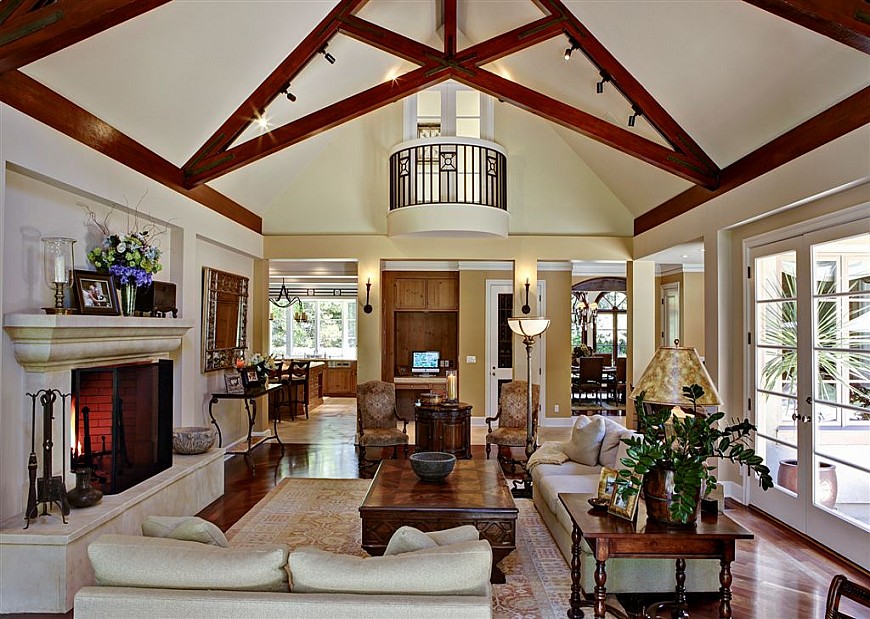 Welcome to this magnificent, two-story, Mediterranean villa constructed on a secluded flag lot by Pacific Peninsula Group in 1996. Flanked by stately columns, a massive plank door opens from the front terrace into an imposing, double-height entry hall. Inside, mahogany floors, Palladian windows and beamed ceilings create an atmosphere of unparalleled elegance and comfort. Outside, the rear patio encompasses both a wood burning fireplace and a fire pit, as well as an barbecue area convenient to the swimming pool and spa. The studio pool house incorporates a full kitchen and bath, plus a wine cellar. The sweeping lawn ends in a formal rose garden, and perimeter trees ensure peace and privacy. Detached three car garage and generous guest parking