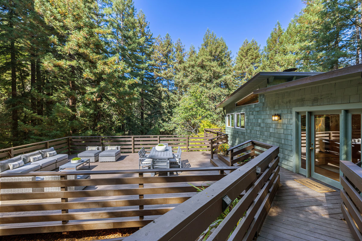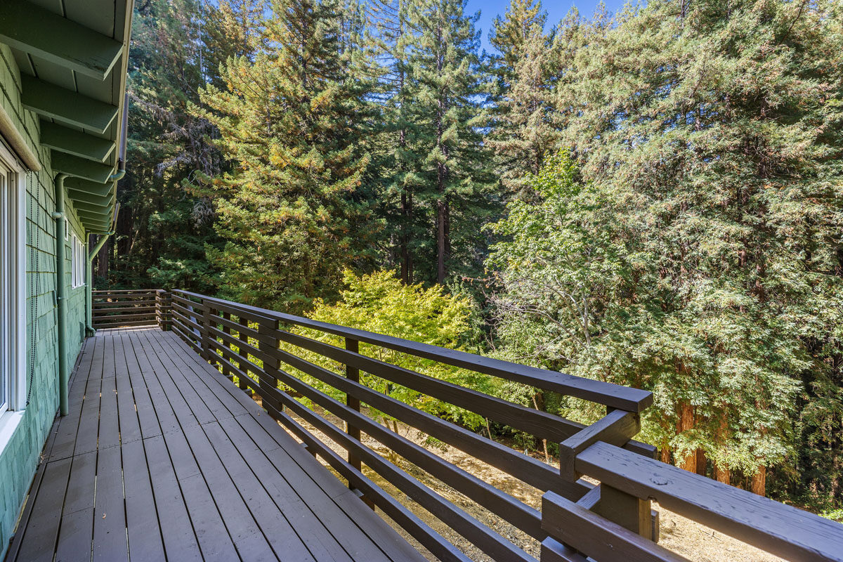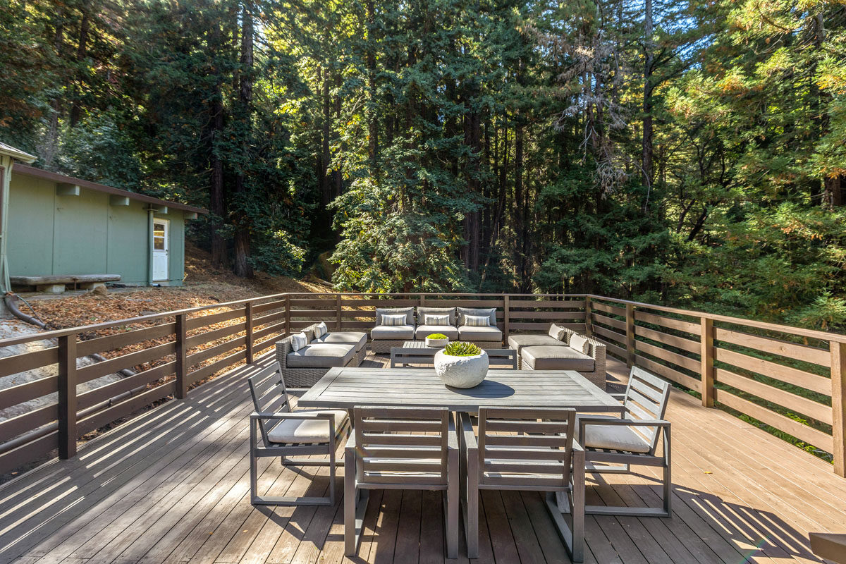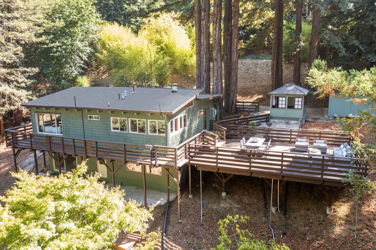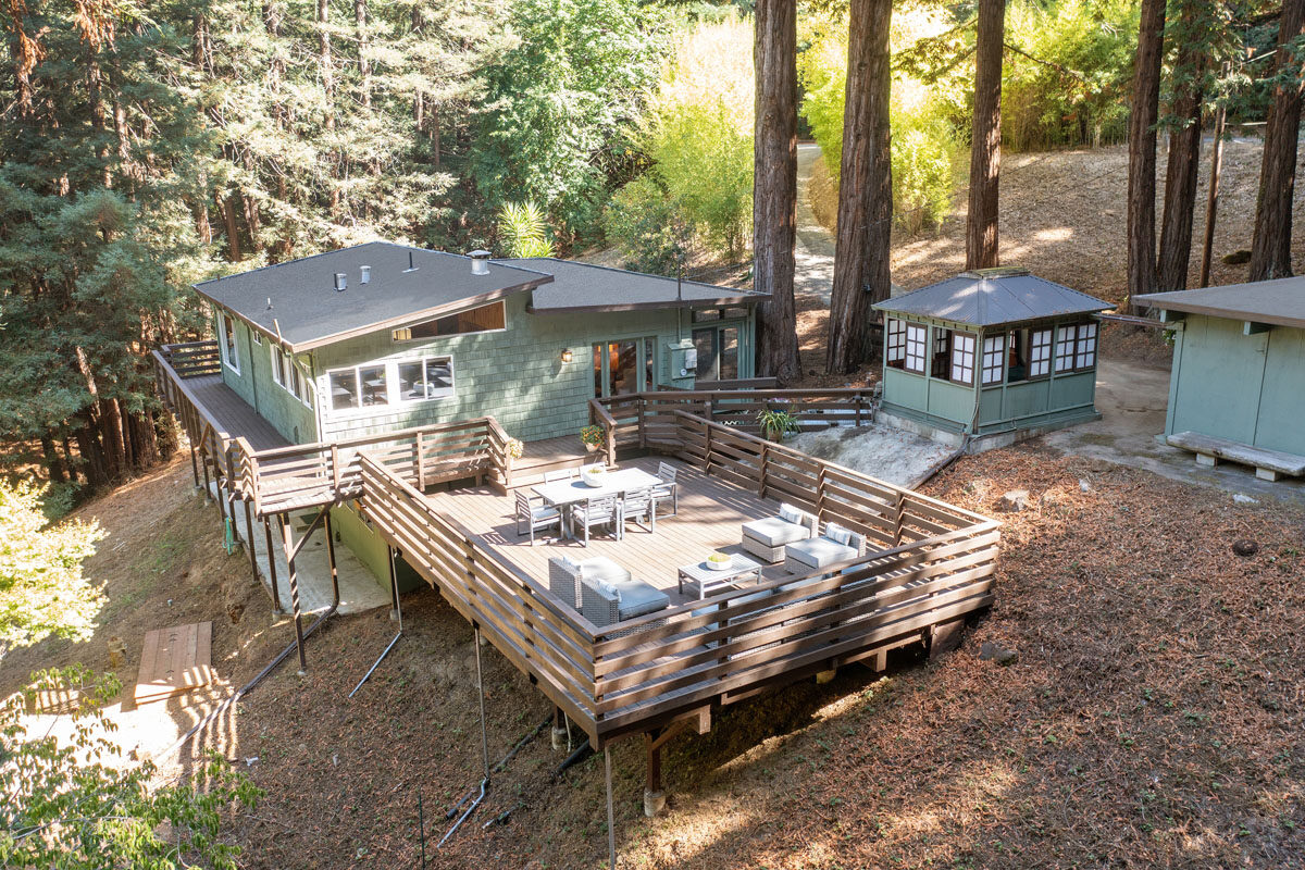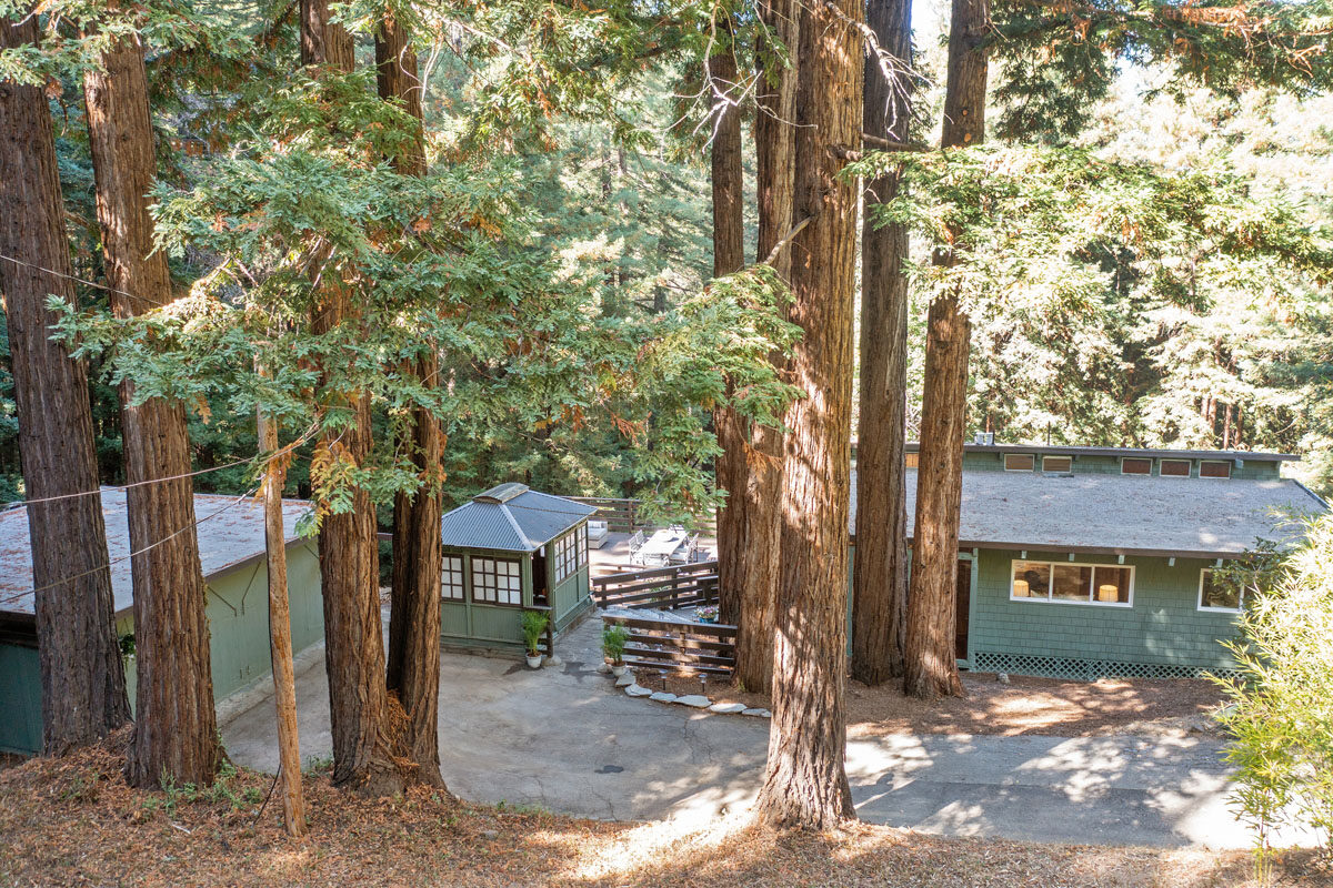 Privately tucked away at the road’s end, bordering the expansive 900-acre Huddart Park, this serene country home blends comfort with seclusion. Spanning approximately 1.71 acres of sunlit grounds stretching to Kings Mountain Road, the home harmonizes perfectly with nature. Whether a primary residence, just 2.5 miles from Woodside’s town center, or a weekend escape from urban living, this home offers the utmost in tranquility with close-in convenience. A wellness center awaits at the entrance with a spacious spa set within a wood-paneled building encircled by shoji screen windows. For fitness, 23 miles of hiking, biking, and equestrian trails await at Huddart Park.
