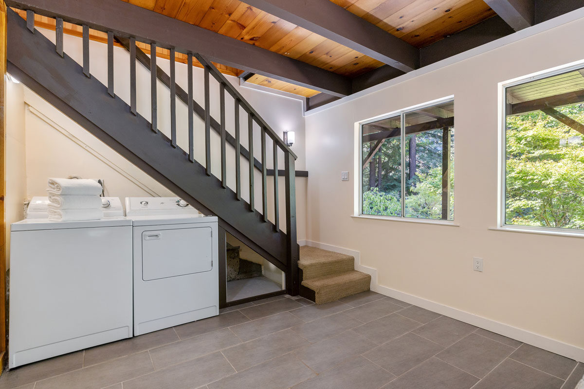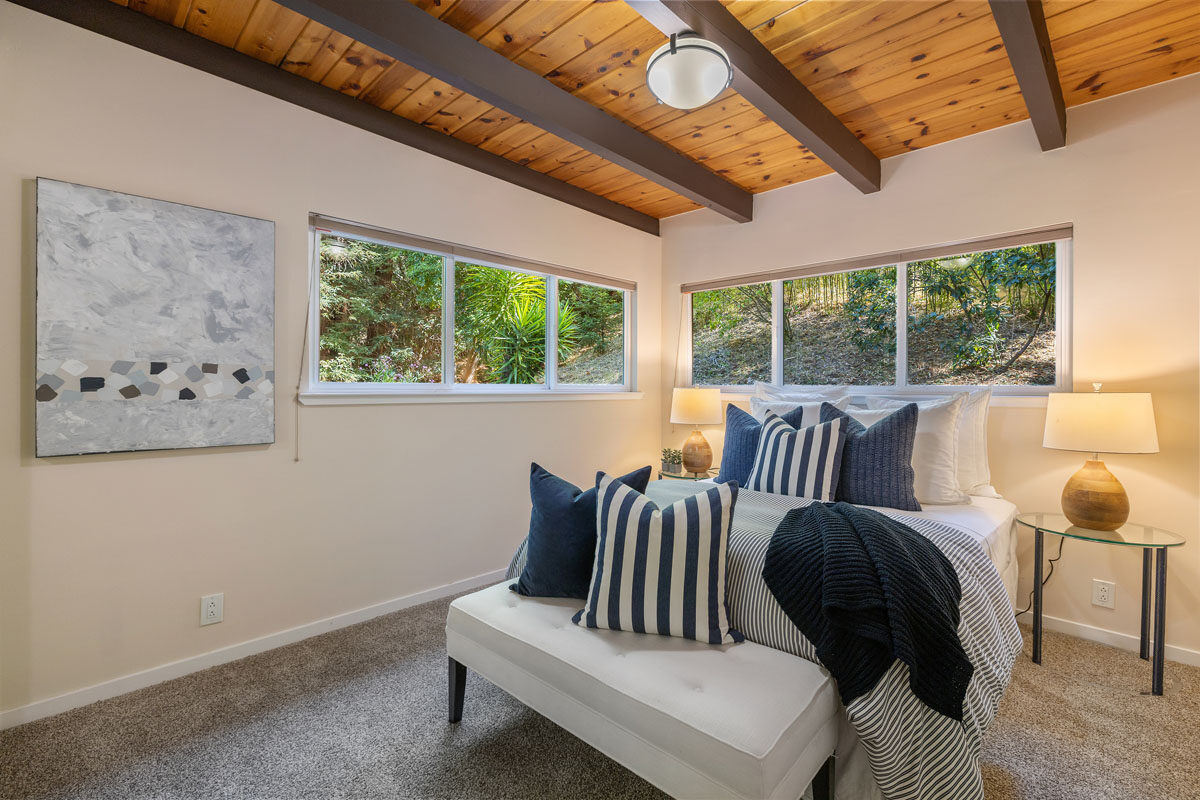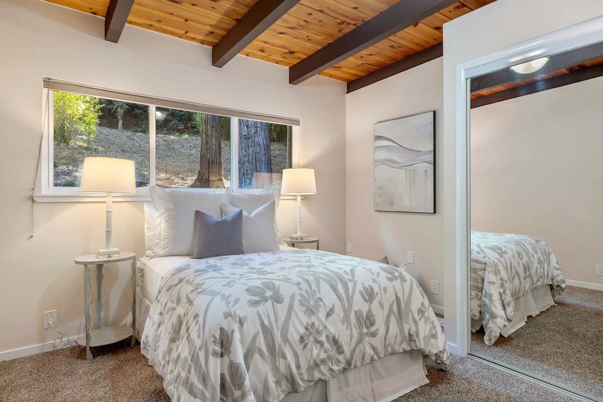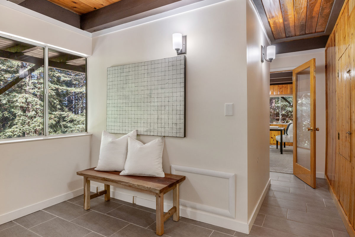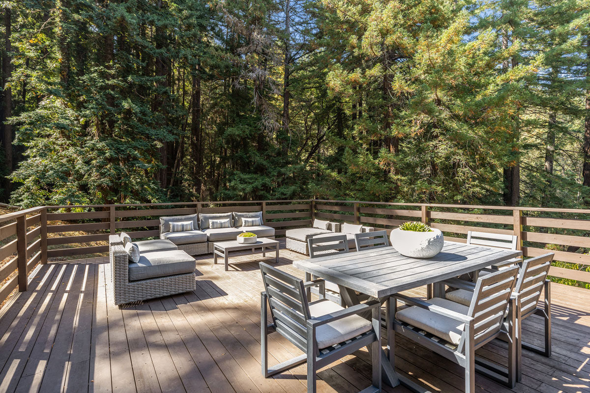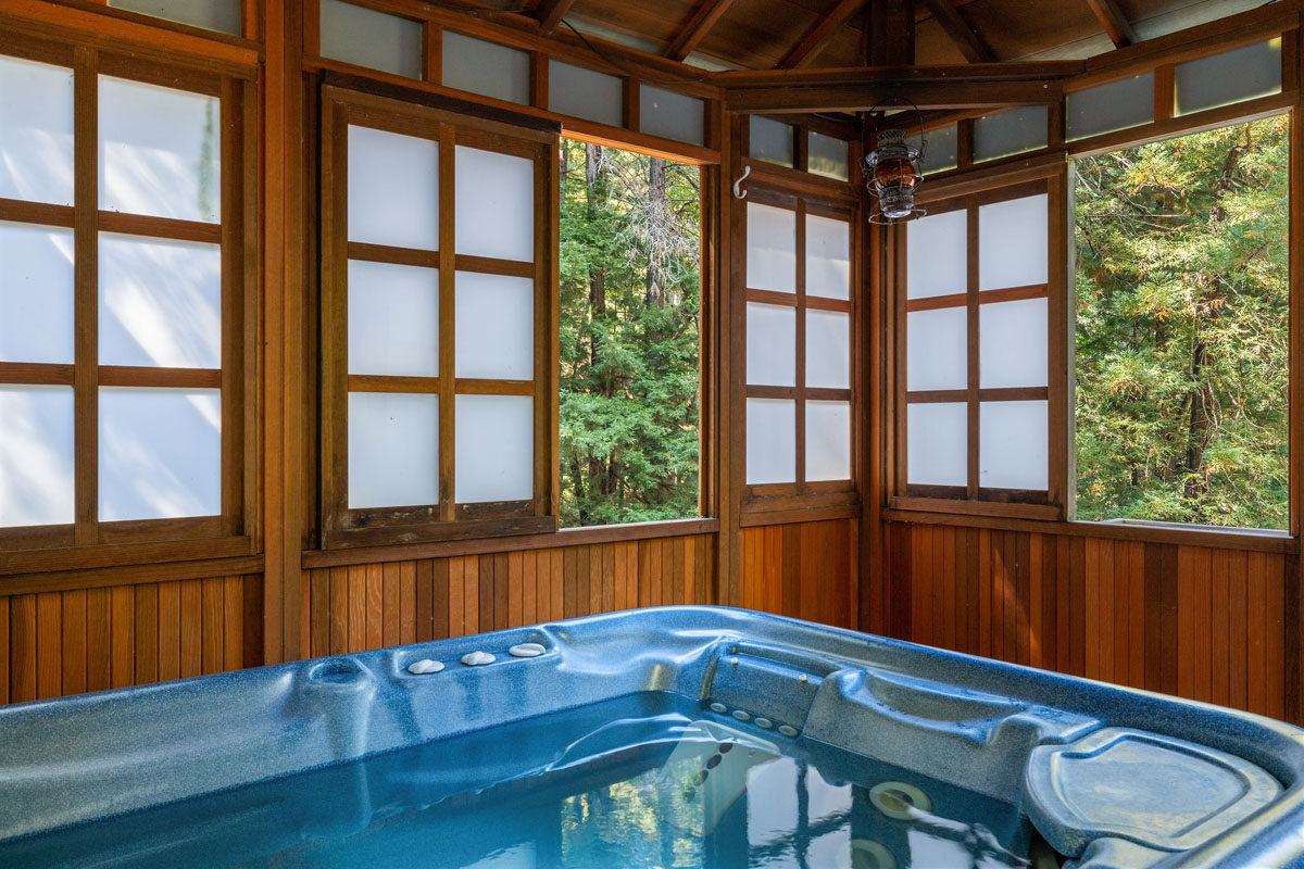 Privately tucked away at the road’s end, bordering the expansive 900-acre Huddart Park, this serene country home blends comfort with seclusion. Spanning approximately 1.71 acres of sunlit grounds stretching to Kings Mountain Road, the home harmonizes perfectly with nature. Whether a primary residence, just 2.5 miles from Woodside’s town center, or a weekend escape from urban living, this home offers the utmost in tranquility with close-in convenience. A wellness center awaits at the entrance with a spacious spa set within a wood-paneled building encircled by shoji screen windows. For fitness, 23 miles of hiking, biking, and equestrian trails await at Huddart Park.