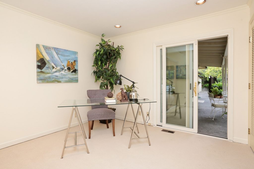 Ideally located, this 4 bedroom, 2.5 bath home is perfectly situated in desirable Sharon Heights. The well-appointed home features a sunken formal living room with gas fireplace, a formal dining room and remodeled kitchen with breakfast nook, granite counters, and stainless steel appliances. A separate family room with gas fireplace and built-in shelves and cabinets with wet bar, has sliding glass doors to back yard and patio. Three bedrooms share a tiled full bath with dual sink vanity and shower over tub, while the spacious master suite boasts built-in closets and entertainment center, walk-in closet, sliding glass door to the back yard, and an en-suite bath with dual-sink vanity, stall shower, and spa tub. The private back yard is perfect for entertaining with a composite patio, in-ground pool with diving board, built-in fire pit, fruit trees, and garden.