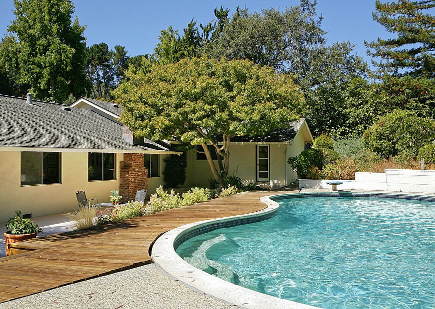 Welcome to this appealing, ranch-style home located in the heart of Sharon Heights. A variety of mature trees surrounds this charming, four bedroom, two and one-half bath home. A spacious living/dining room, separate family room and eat-in kitchen complete the floor plan. In the rear garden, an expansive covered patio, a sunny deck and a swimming pool make outdoor entertaining a pleasure. The attached two-car garage has built-in storage. Award-winning Las Lomitas schools. A wonderful opportunity!